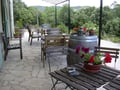 Reeds vroeg in de lente kan er ontbeten worden op het zuidelijk georienteerd terras, met een wijds uitzicht op de vallei, de omliggende heuvels en het dorpje Cabrières.
